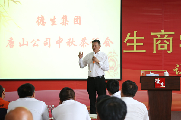 總經(jīng)理孫玉英致辭,為所有唐山公司員工送上中秋祝福,感恩與公司攜手奮進(jìn)的德生人。同時(shí),公司投資方也來到茶話會(huì)現(xiàn)場(chǎng),與德生人共謀發(fā)展。