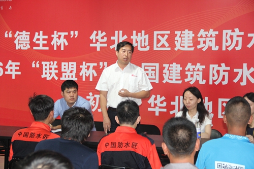 德生防水生產(chǎn)技術(shù)中心總經(jīng)理張洪雨在致辭中講道,希望借助本次比賽能夠為防水行業(yè)發(fā)現(xiàn)更多的施工技術(shù)人才,共同提升行業(yè)建筑防水質(zhì)量。
