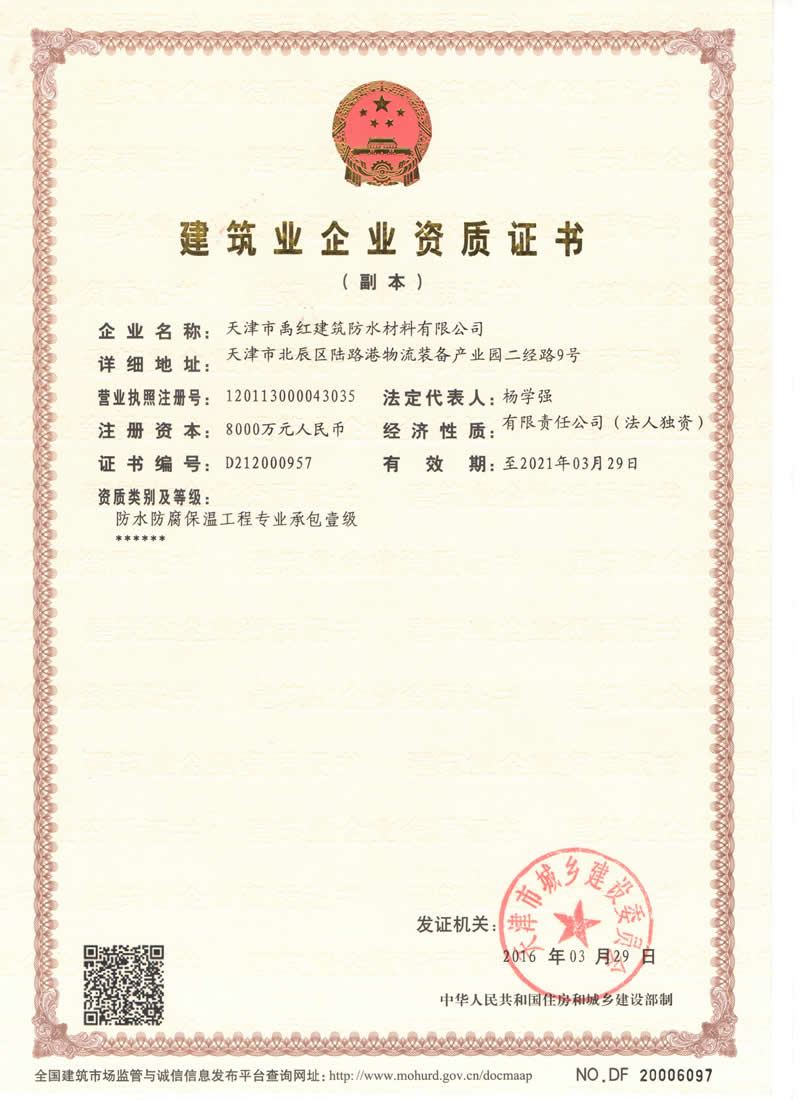 防水防腐保溫工程專業(yè)承包壹級