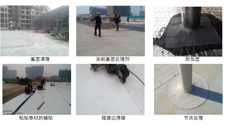 基面驗收→基層清理→涂刷基層處理劑→附加層粘貼→卷材的鋪貼→搭接邊焊接→質量驗收→保護層施工→后續(xù)施工